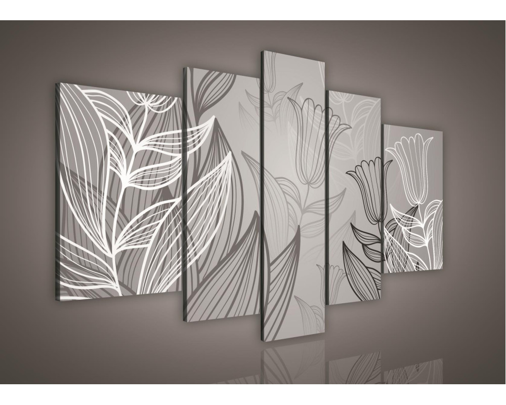 - 150 x 100 cm - pětidílný ŠEDÉ TULIPÁNY 139 S5